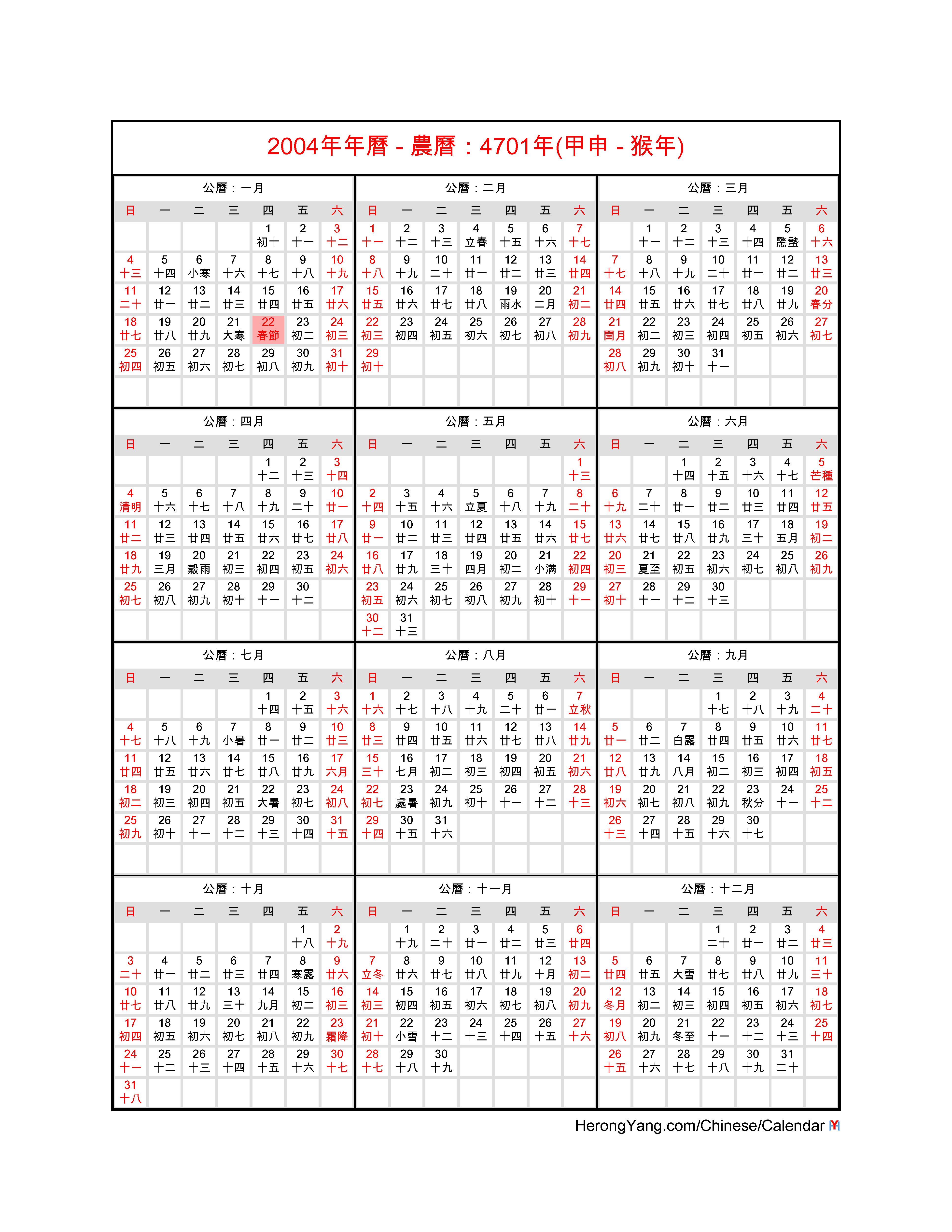 Want to know when is the 2004 Chinese New Year day? Look for free Chinese calendars for 2004?