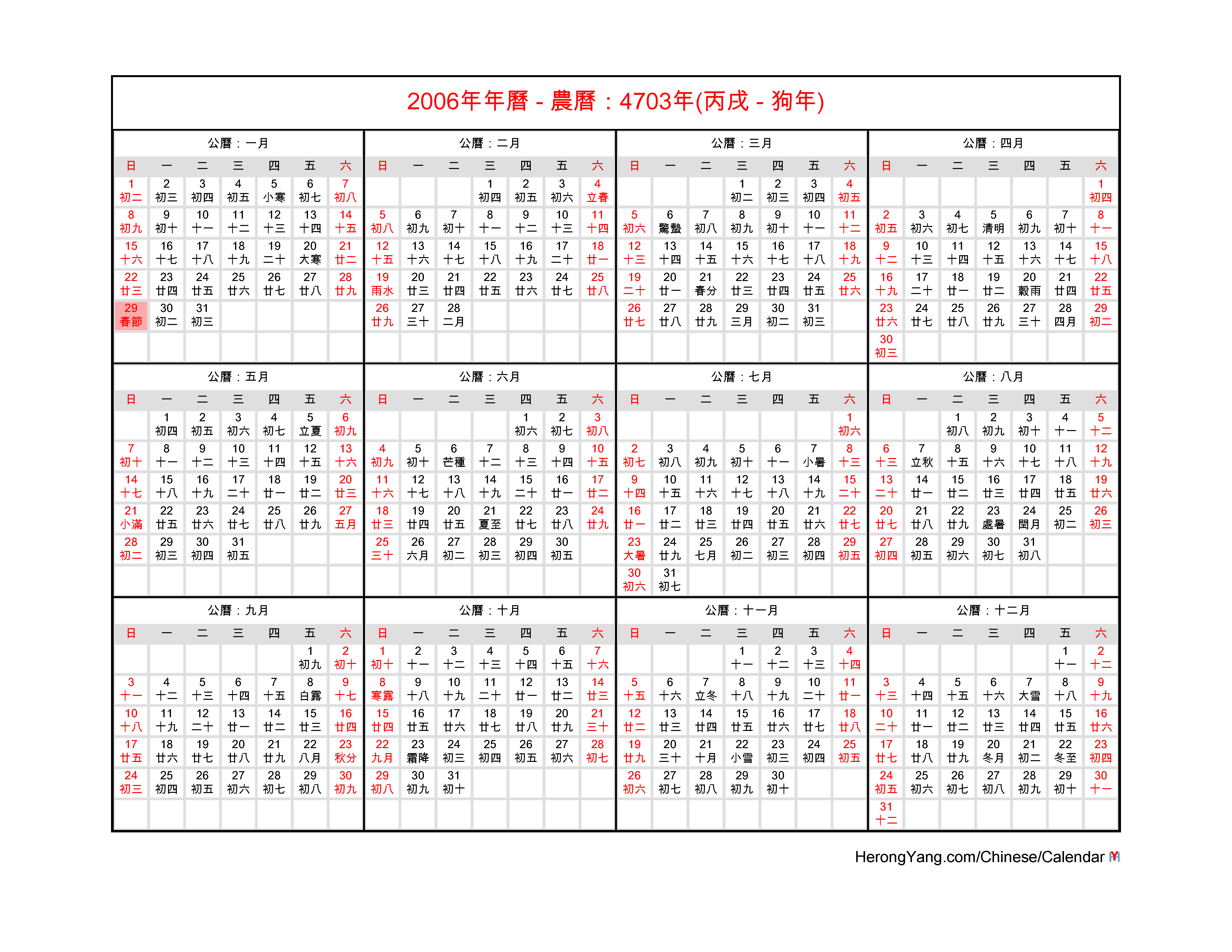Want to know when is the 2006 Chinese New Year day? Look for free Chinese calendars for 2006?