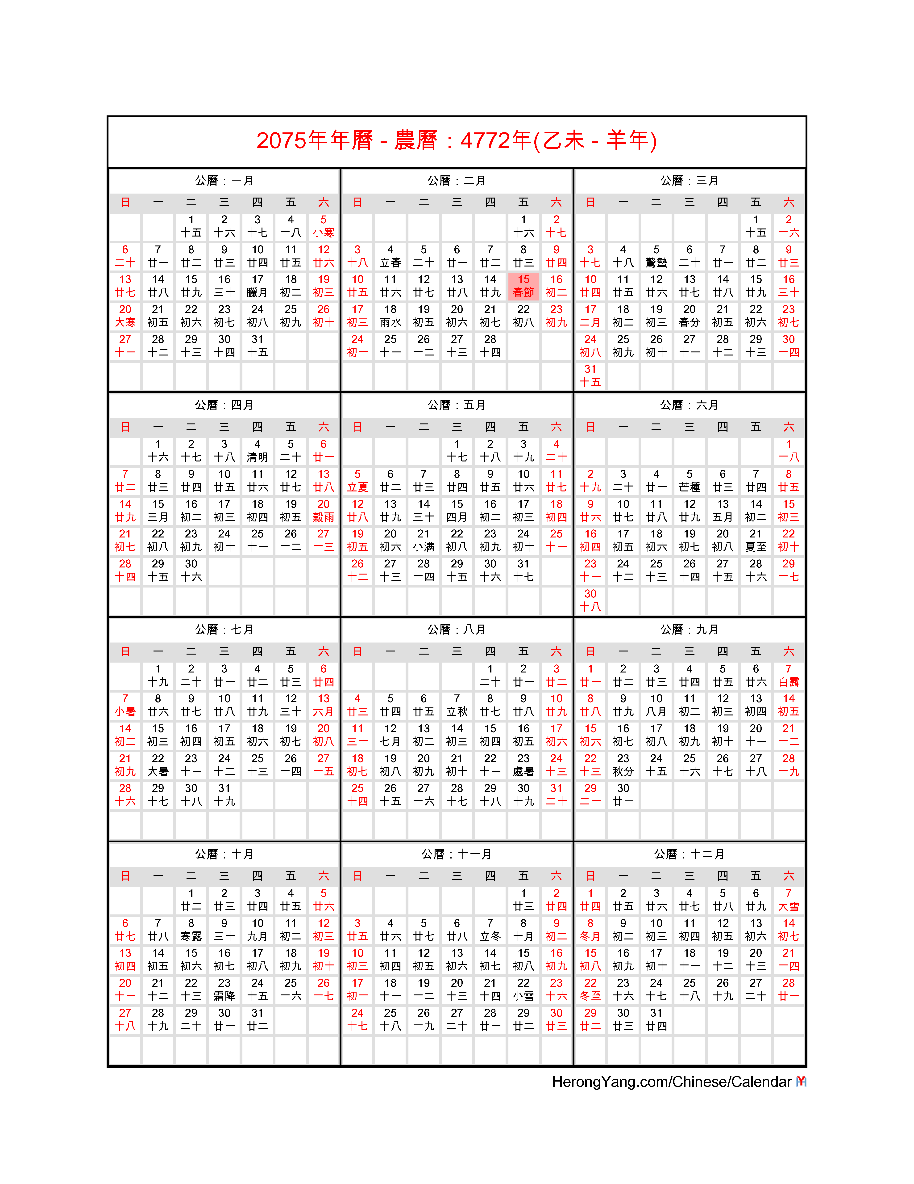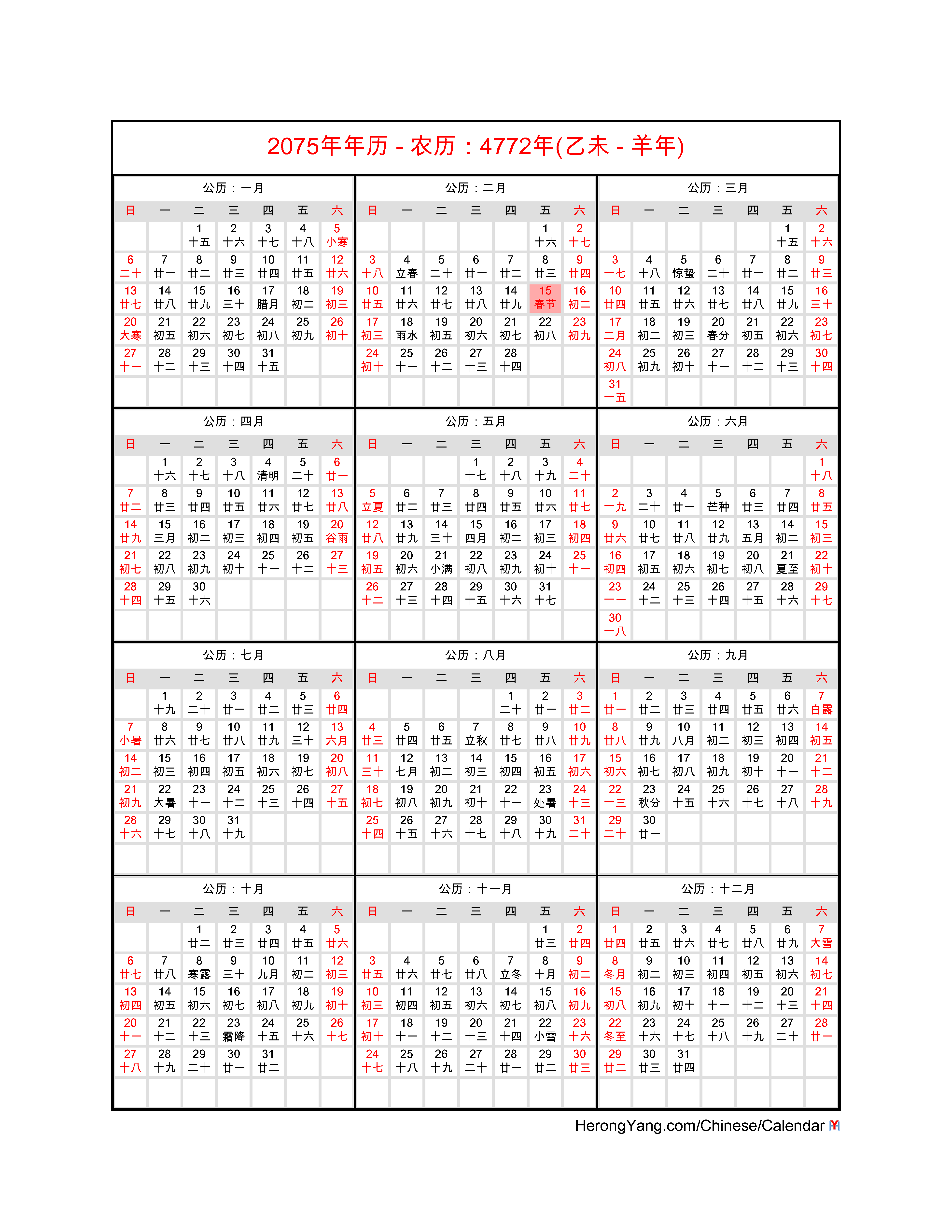 Want to know when is the 2075 Chinese New Year day? Look for free Chinese calendars for 2075?