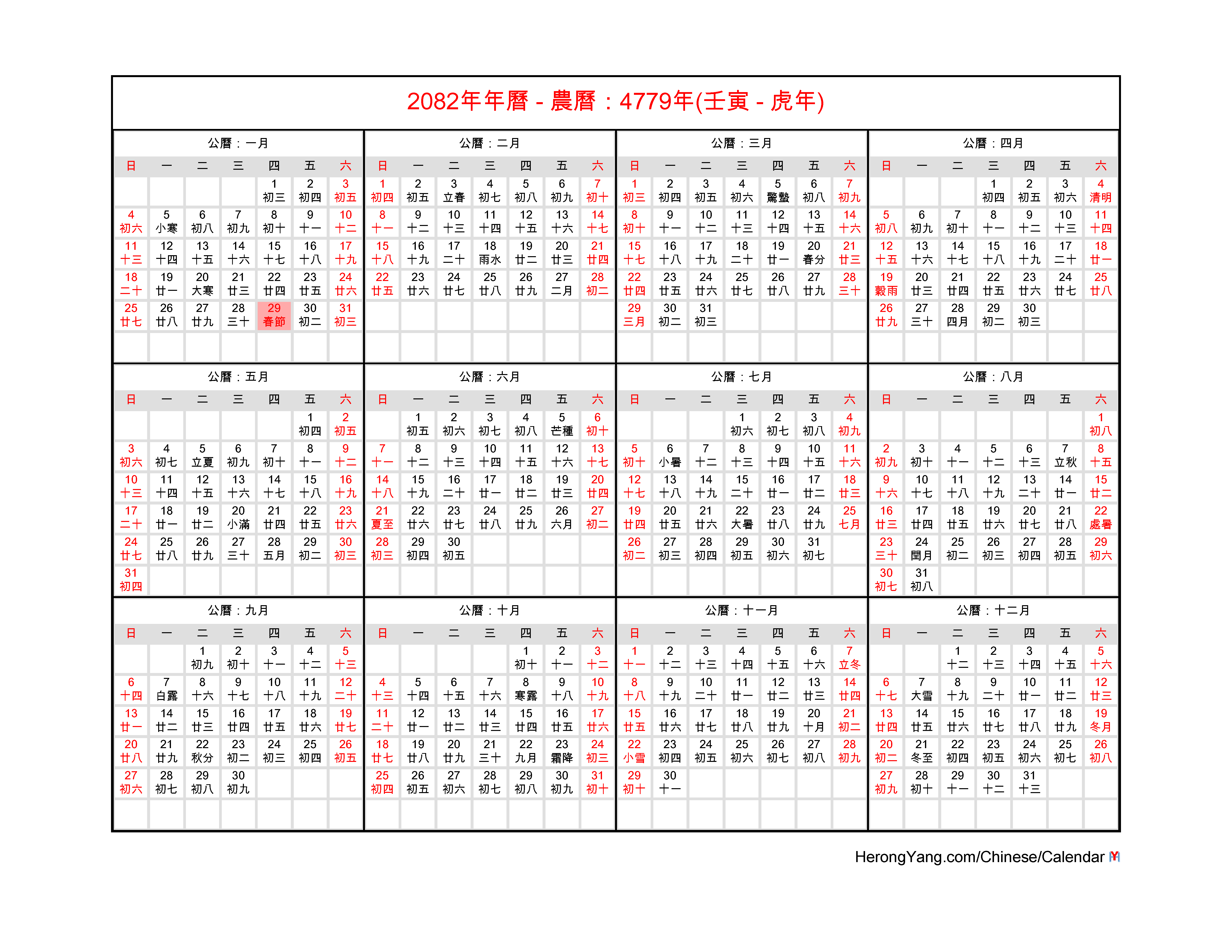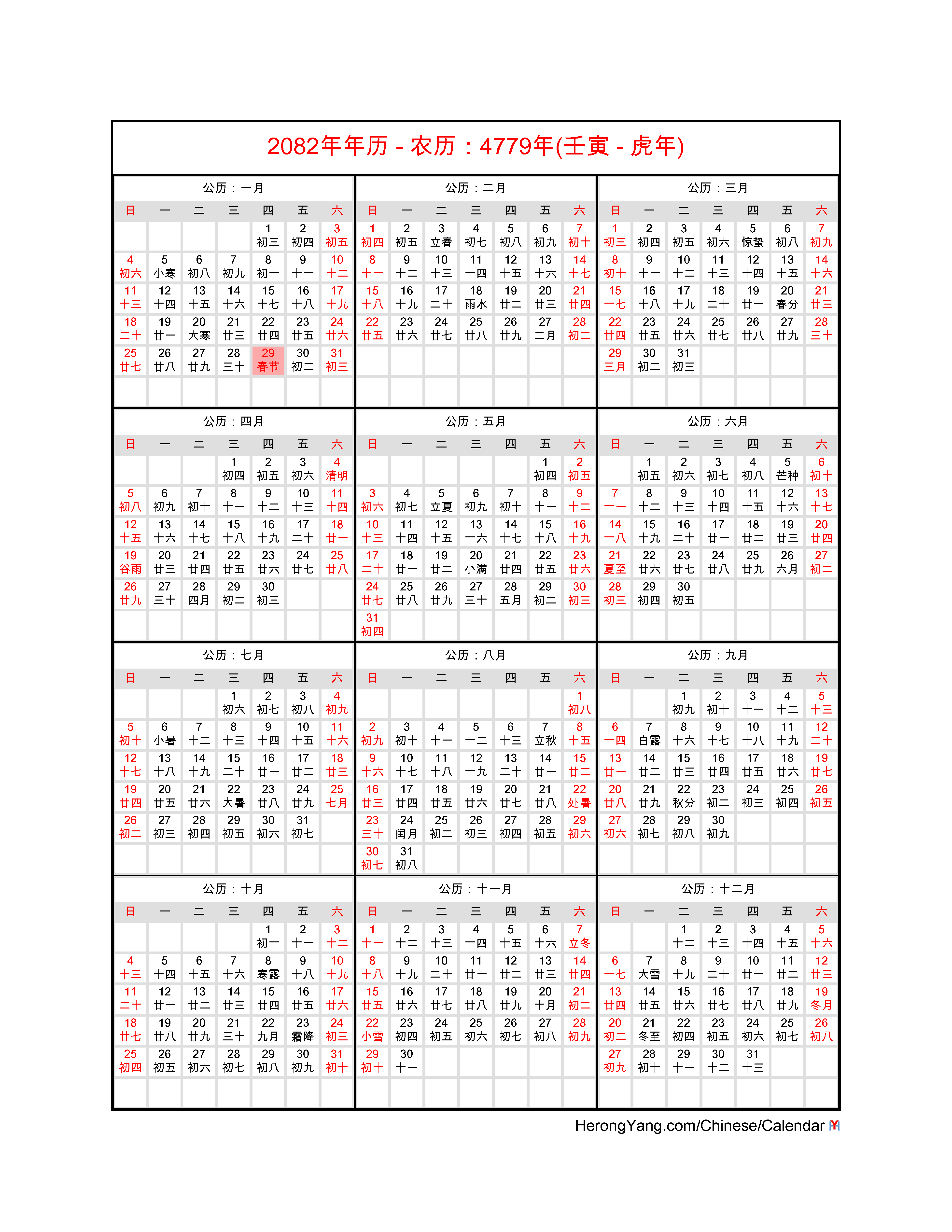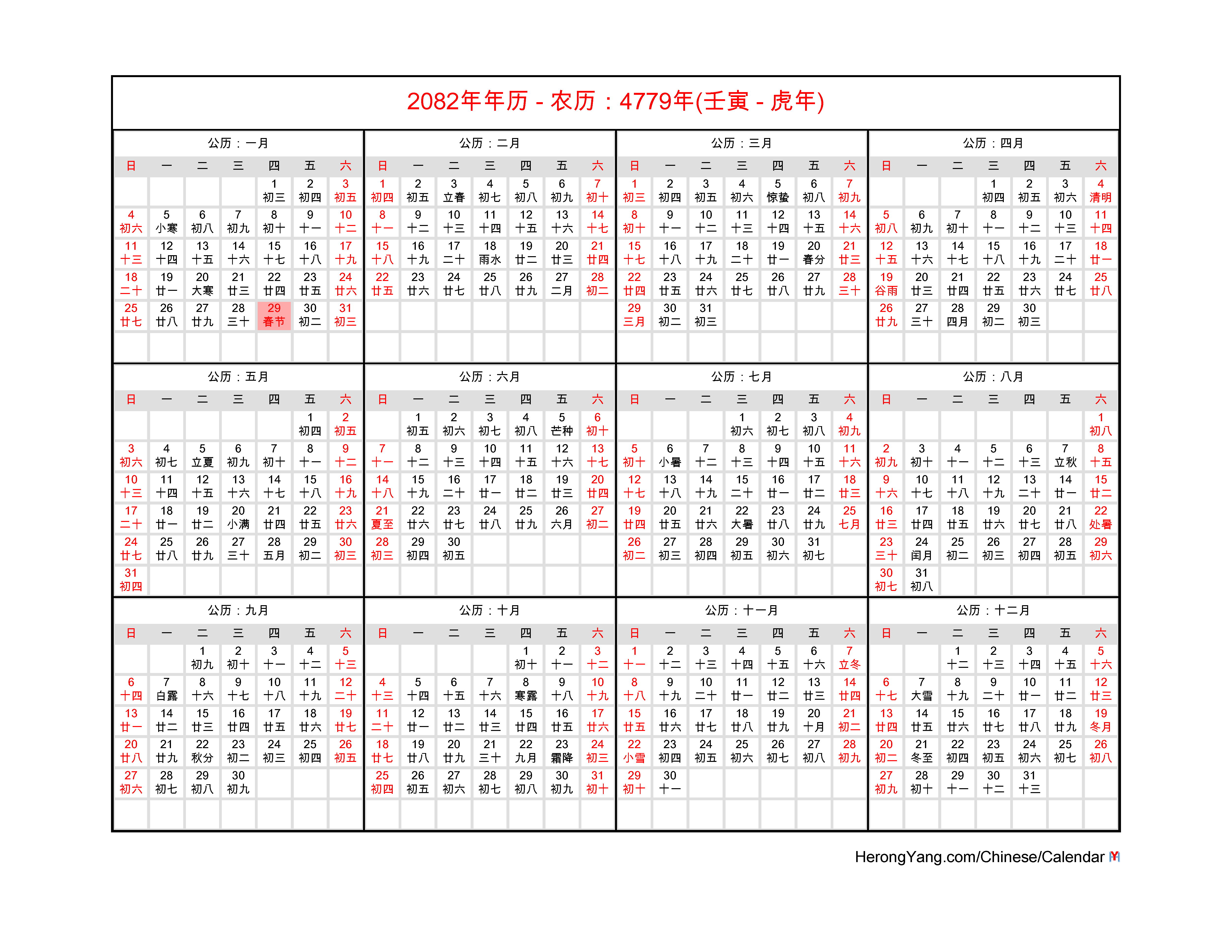 Want to know when is the 2082 Chinese New Year day? Look for free Chinese calendars for 2082?