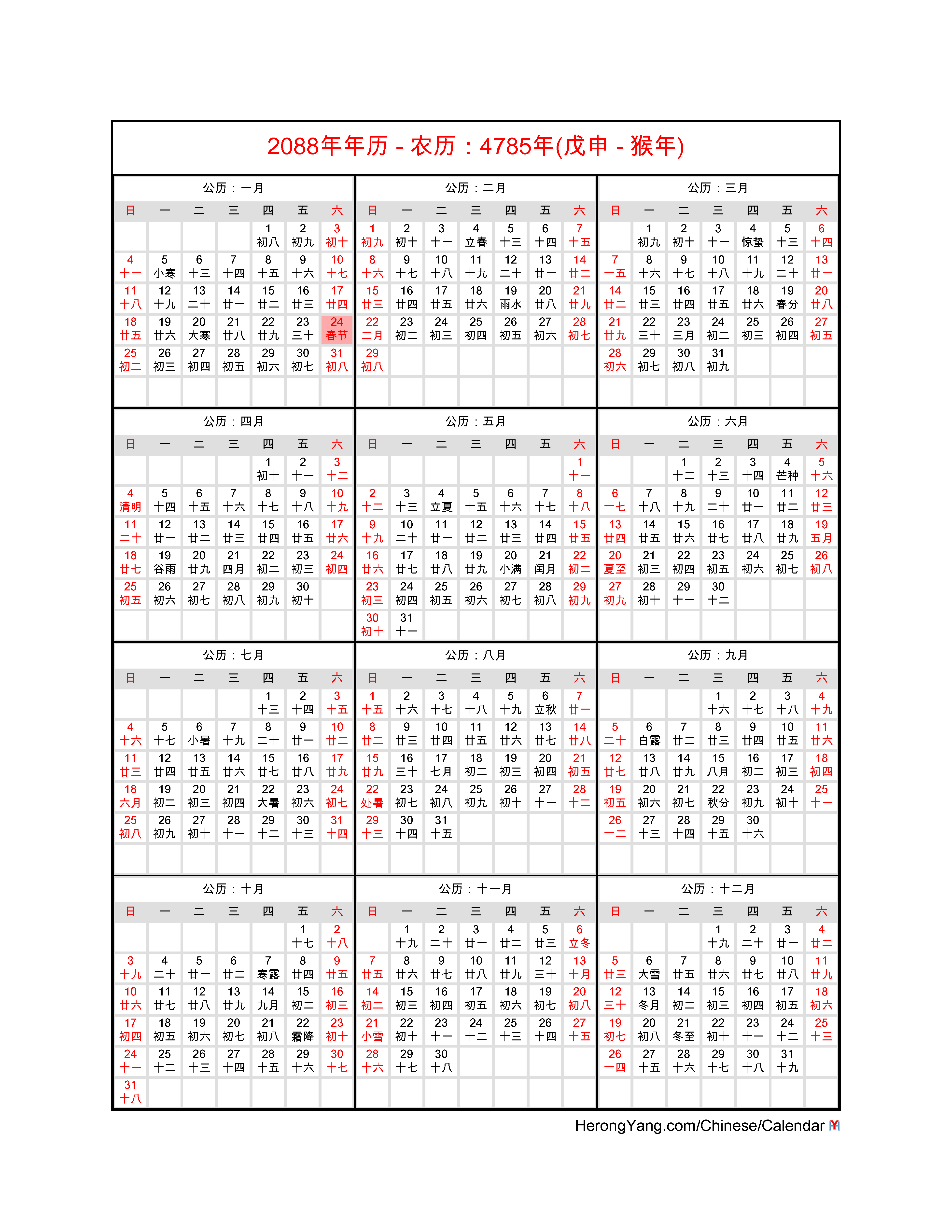 Want to know when is the 2088 Chinese New Year day? Look for free Chinese calendars for 2088?