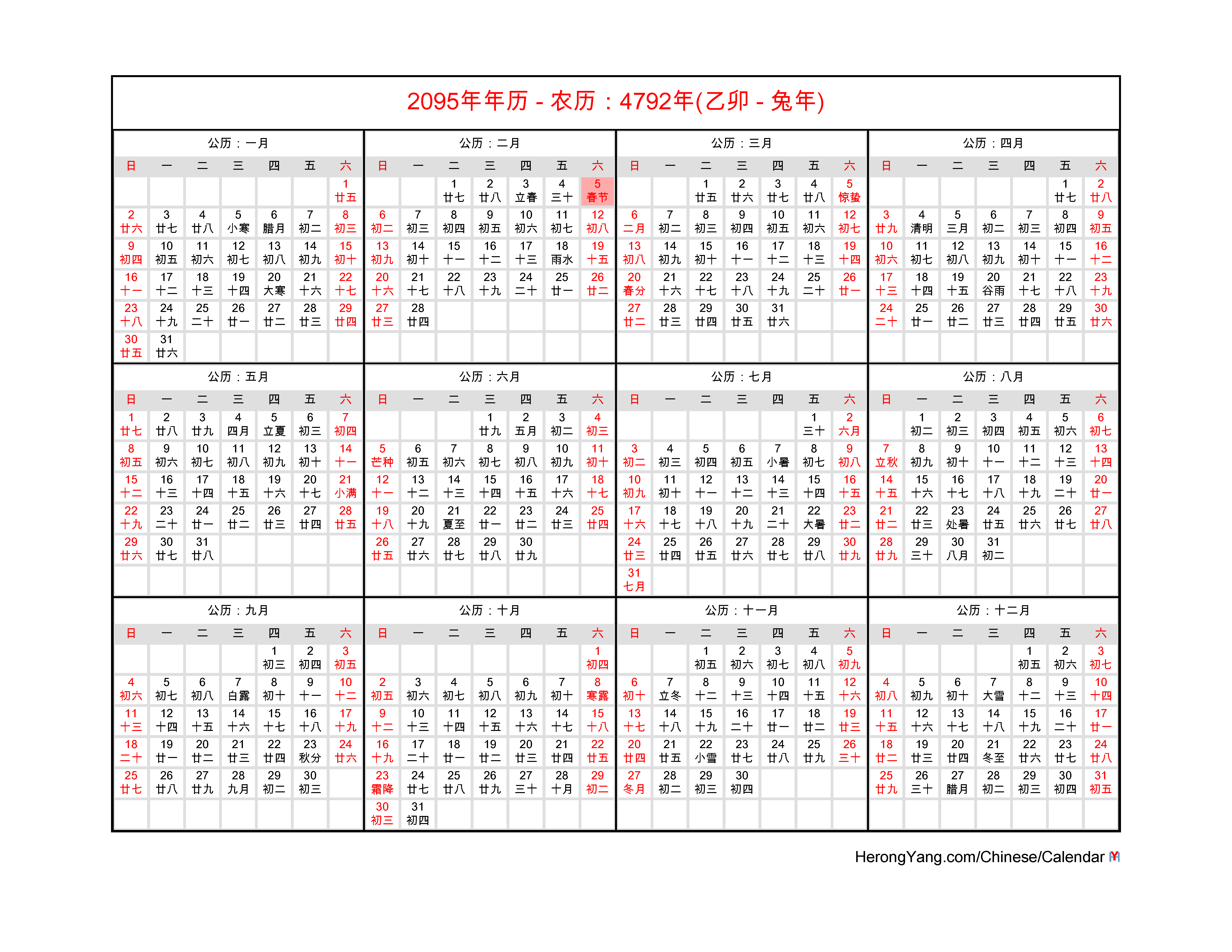 Want to know when is the 2095 Chinese New Year day? Look for free Chinese calendars for 2095?