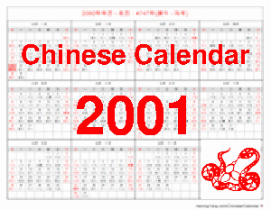 Want to know when is the 2001 Chinese New Year day? Look for free Chinese calendars for 2001?