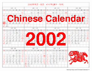 Want to know when is the 2002 Chinese New Year day? Look for free Chinese calendars for 2002?