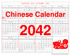 Want to know when is the 2042 Chinese New Year day? Look for free Chinese calendars for 2042?