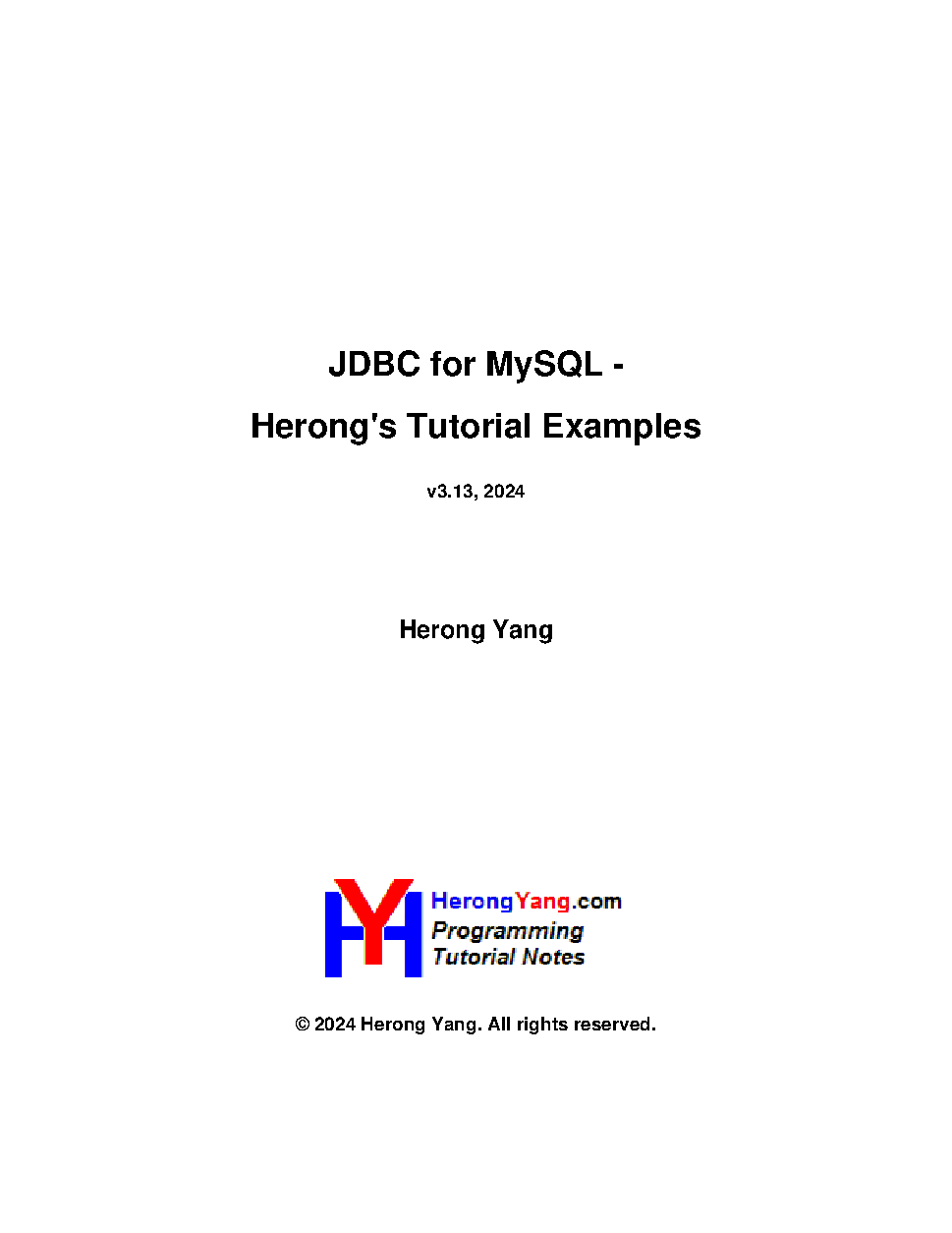 JDBC for MySQL - Herong's Tutorial Examples - v3.13, by Herong Yang