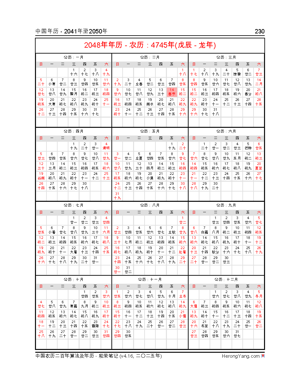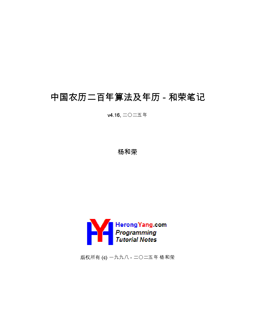 中国农历二百年算法及年历 - 和荣笔记 - v4.16,杨和荣