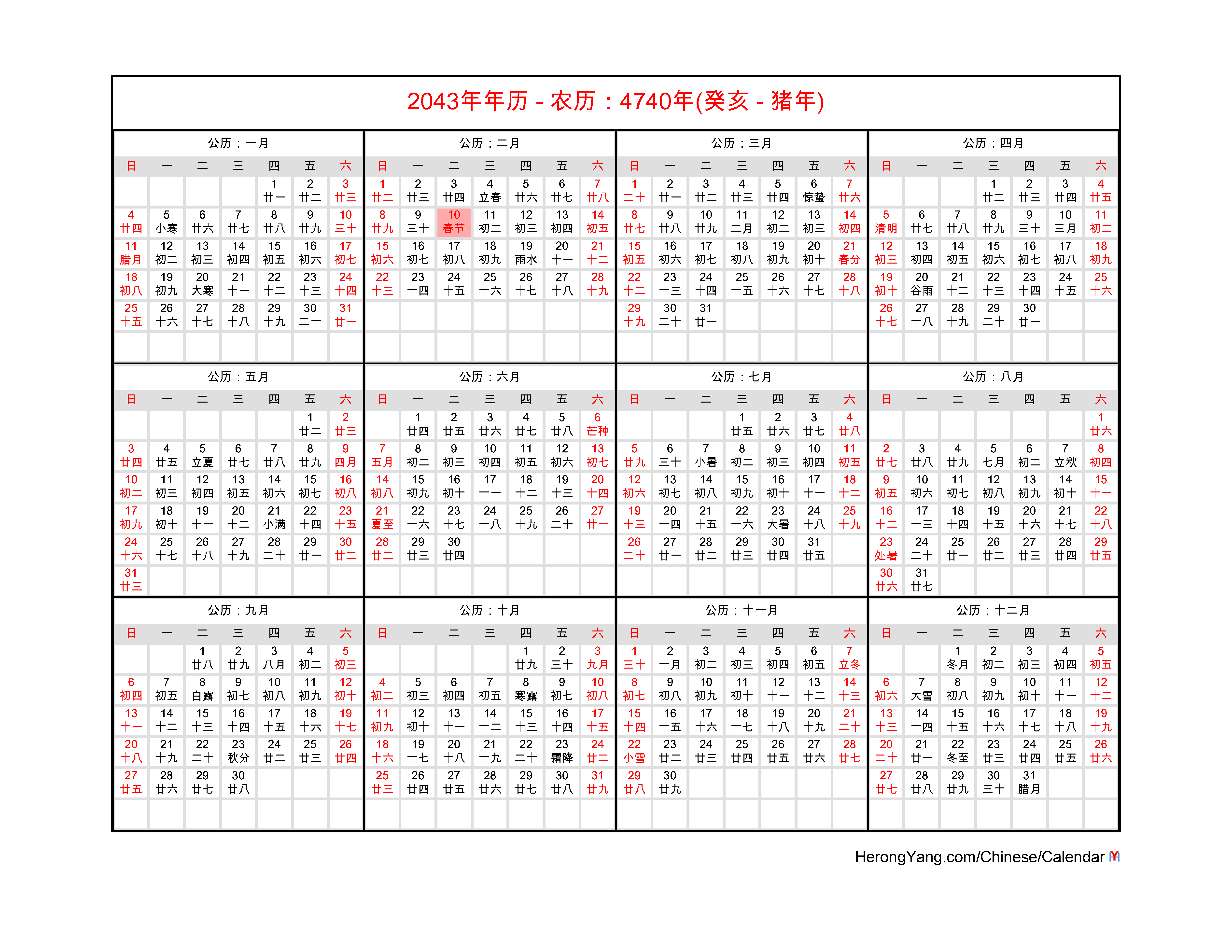 Want to know when is the 2043 Chinese New Year day? Look for free Chinese calendars for 2043?