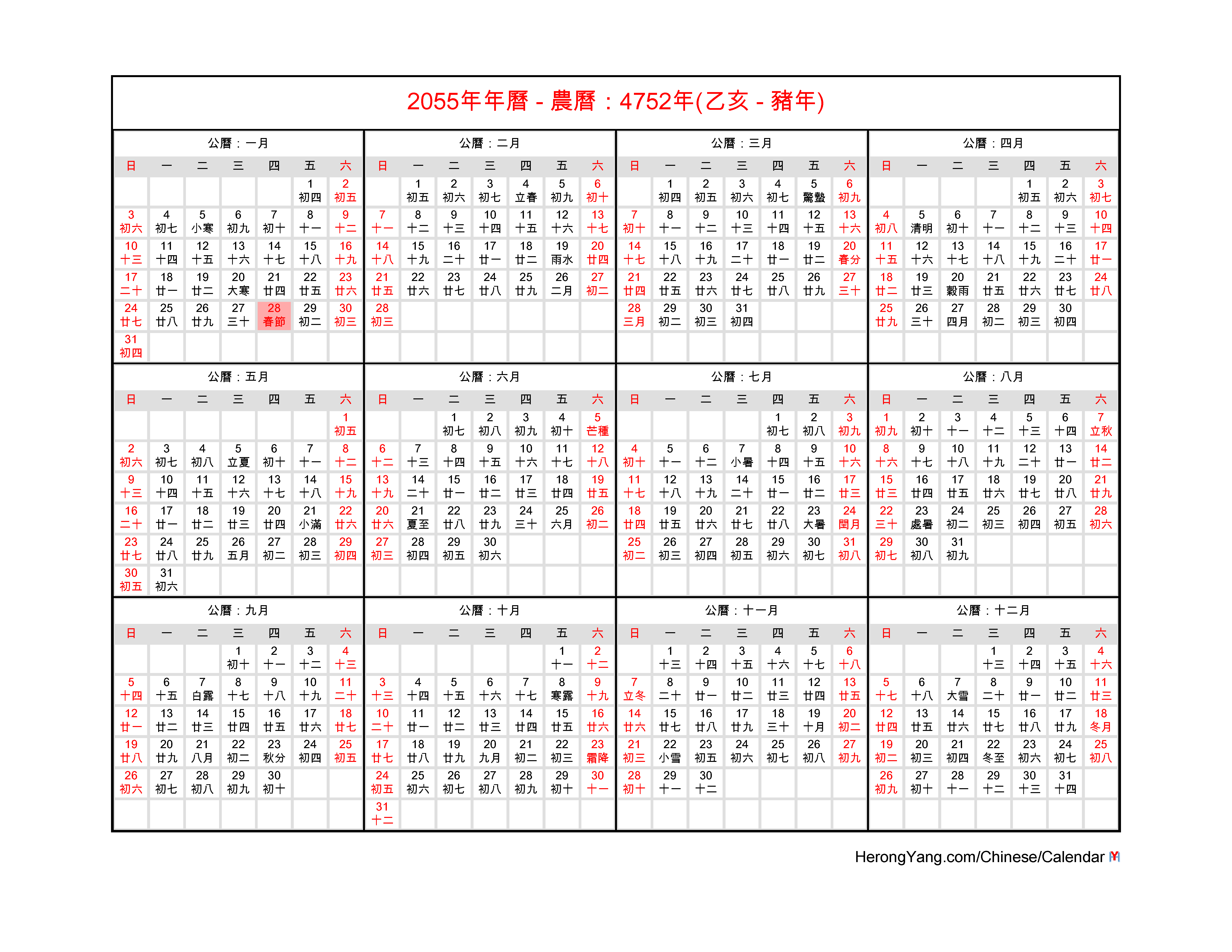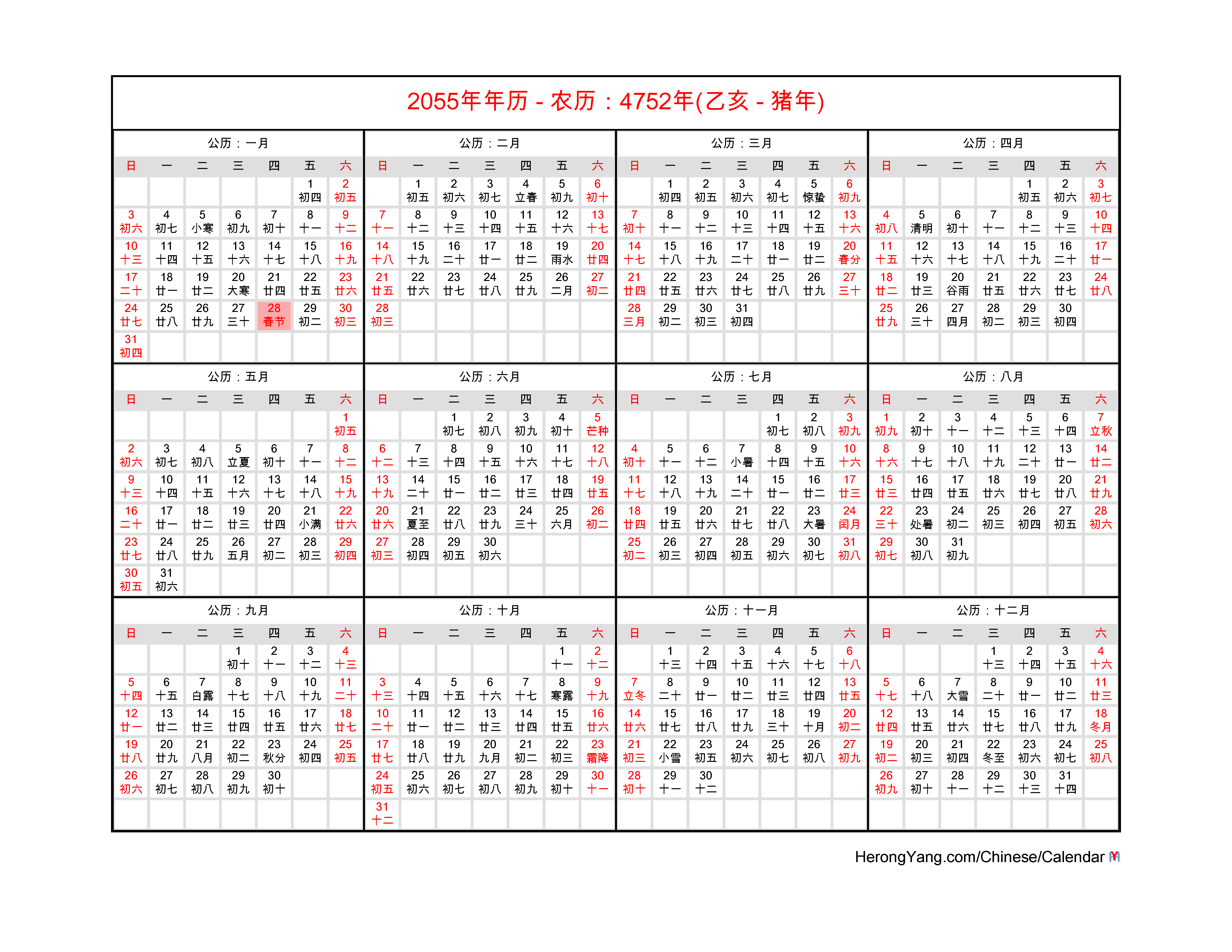 Want to know when is the 2055 Chinese New Year day? Look for free Chinese calendars for 2055?