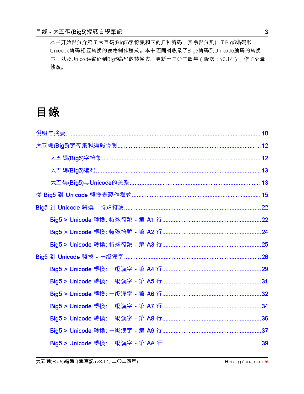 大五碼(Big5)編碼自學筆記 - v3.14,楊和榮