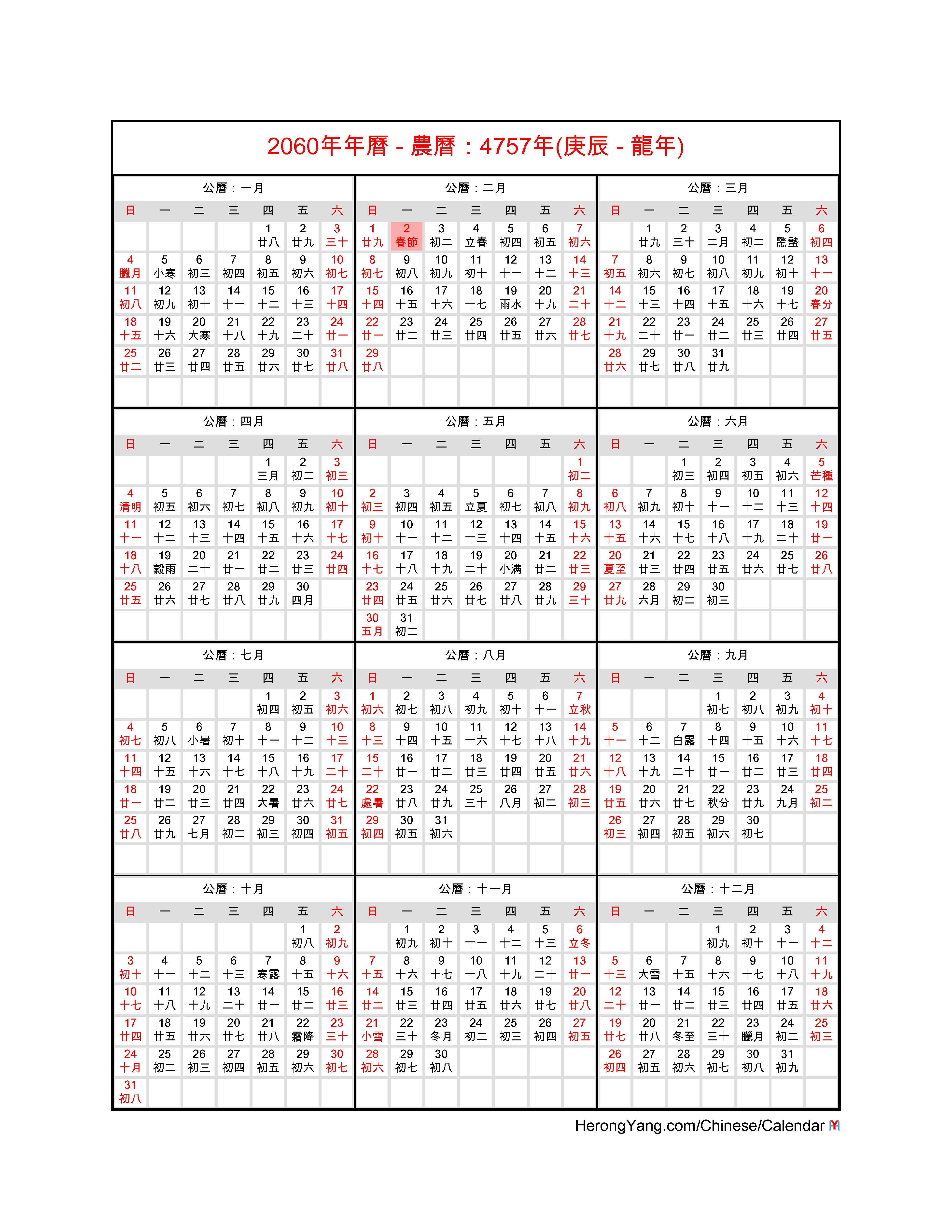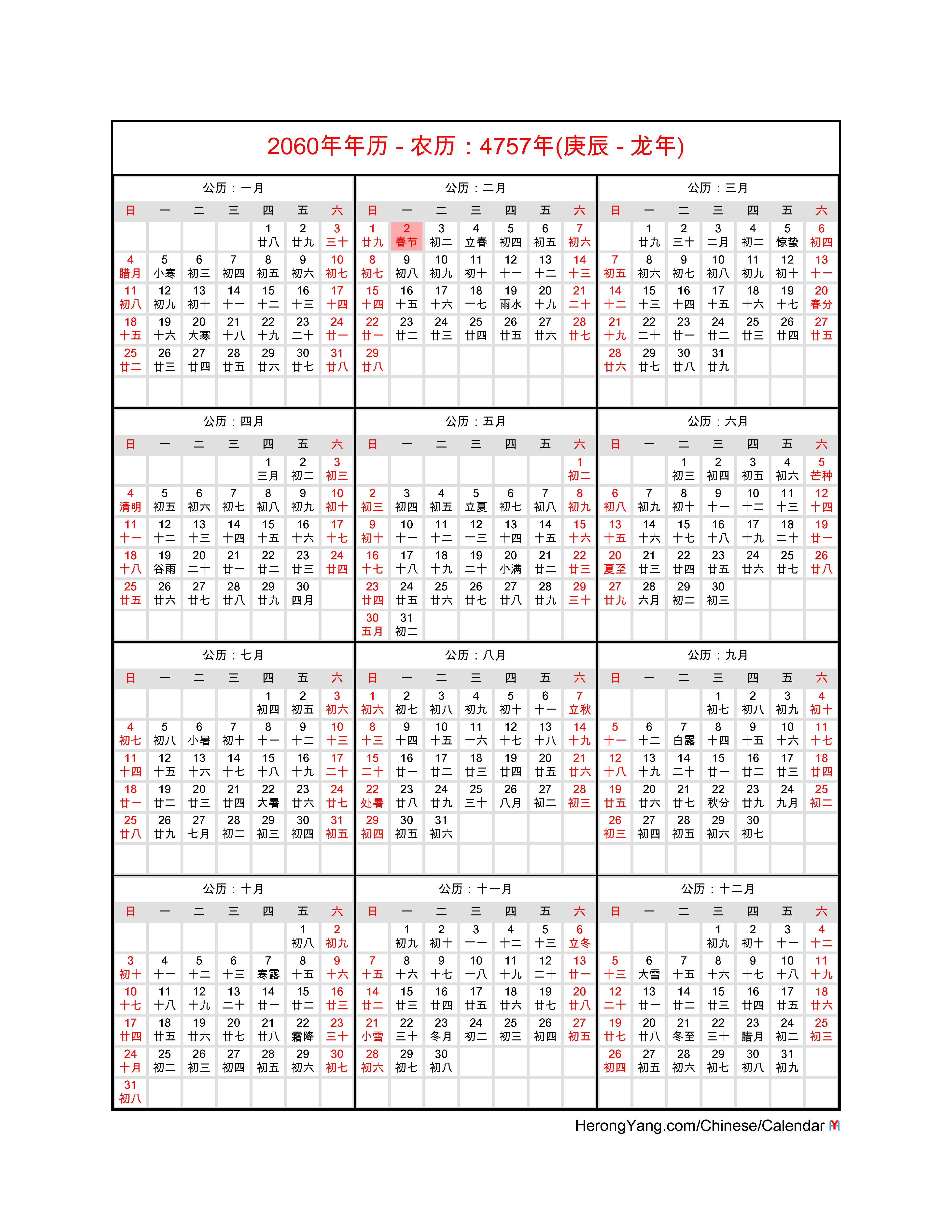 Want to know when is the 2060 Chinese New Year day? Look for free Chinese calendars for 2060?