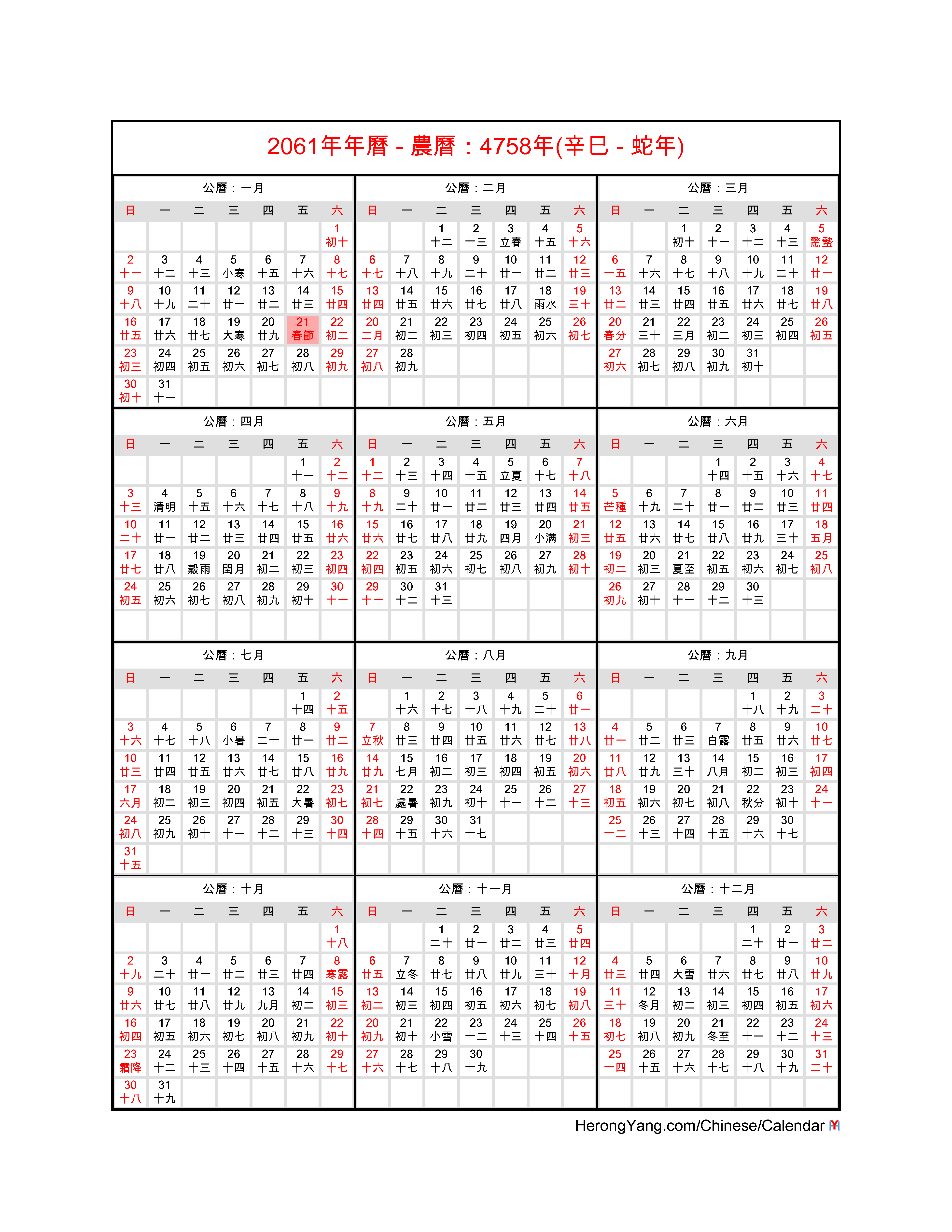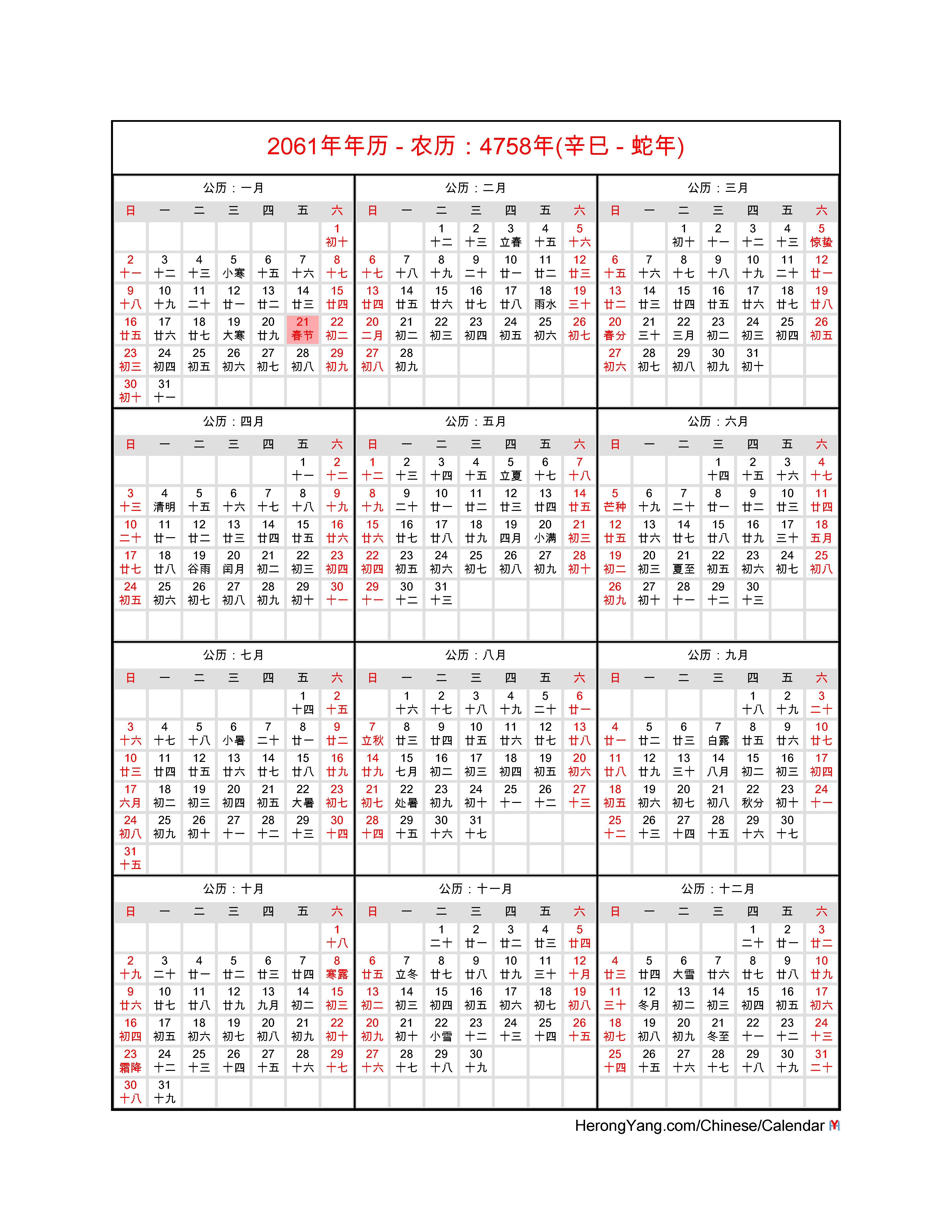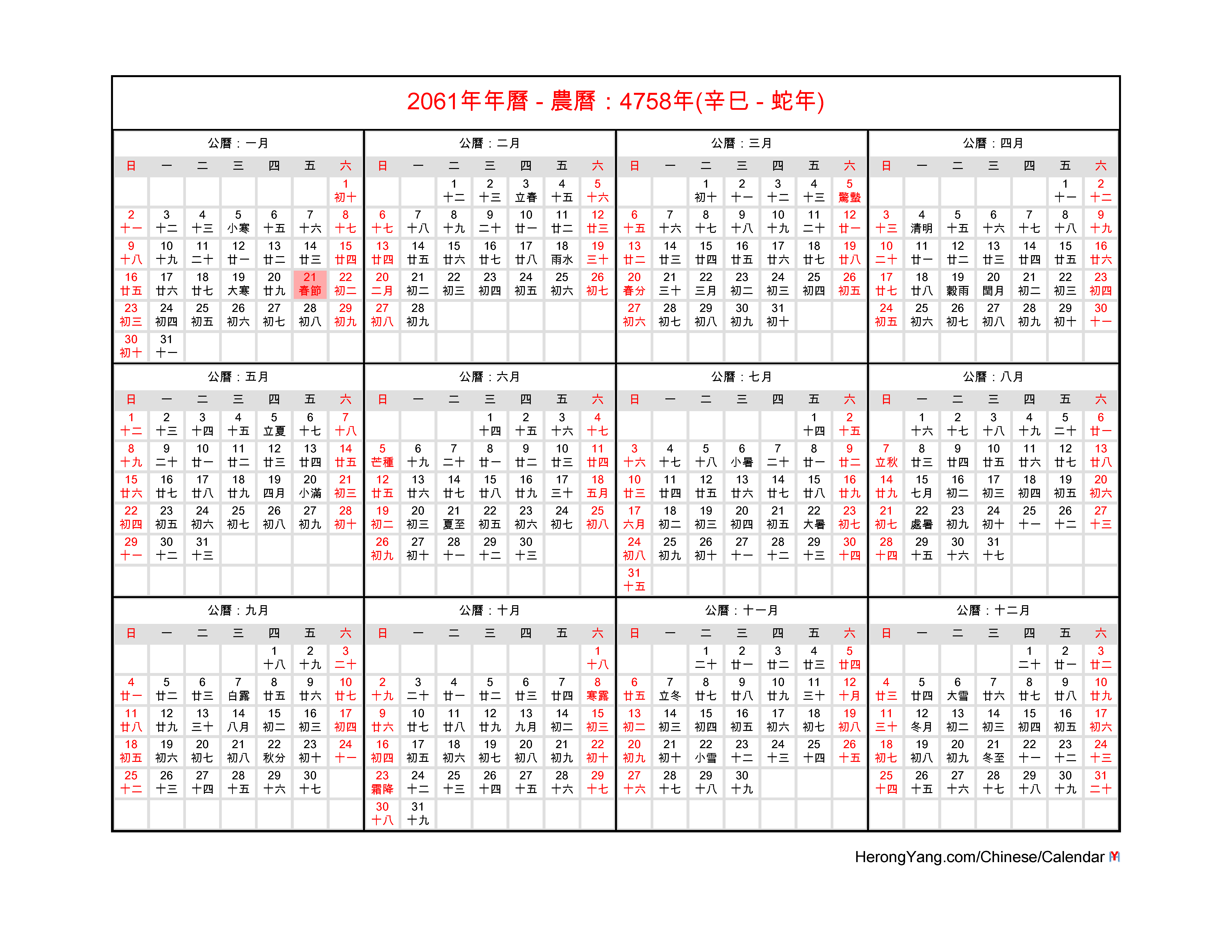 Want to know when is the 2061 Chinese New Year day? Look for free Chinese calendars for 2061?