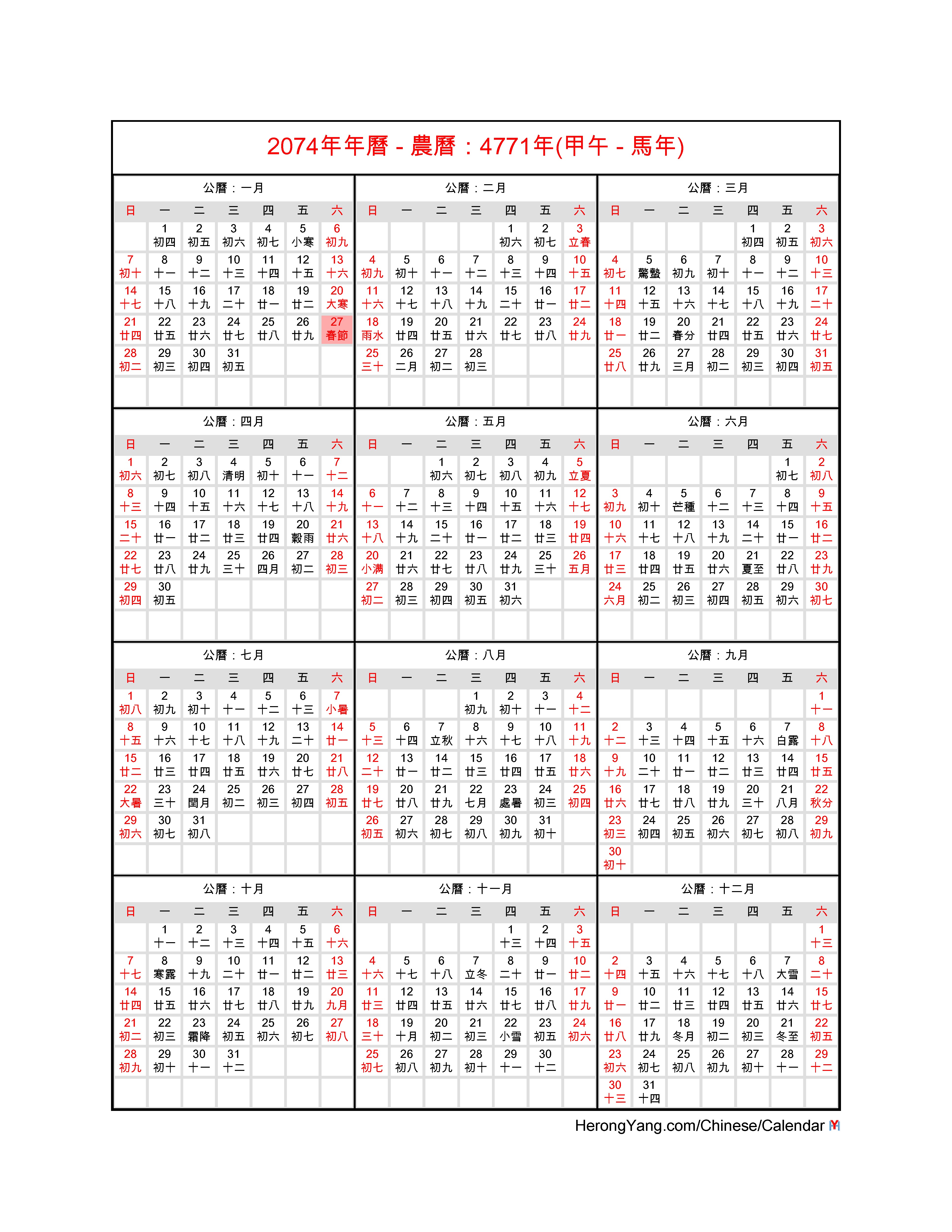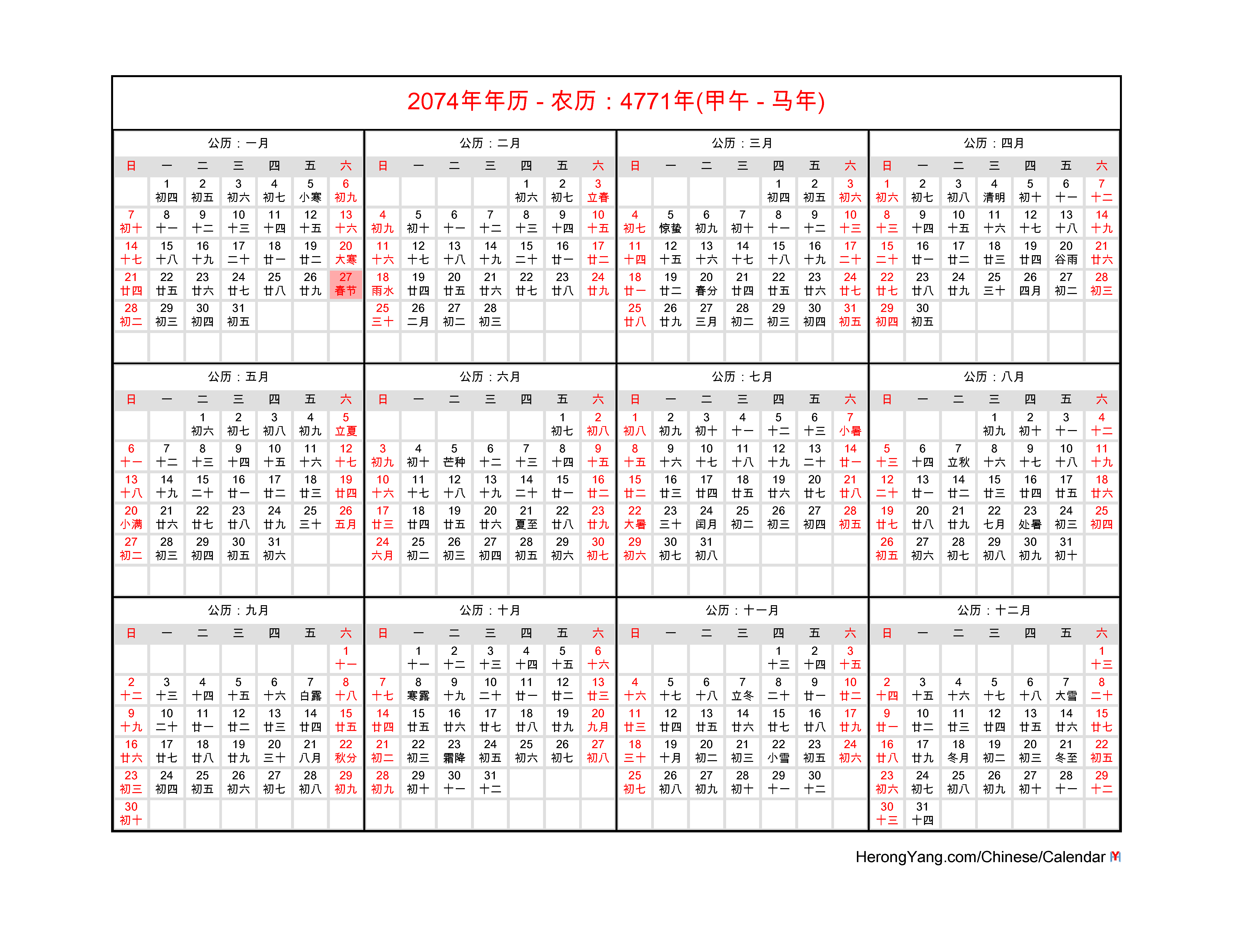 Want to know when is the 2074 Chinese New Year day? Look for free Chinese calendars for 2074?