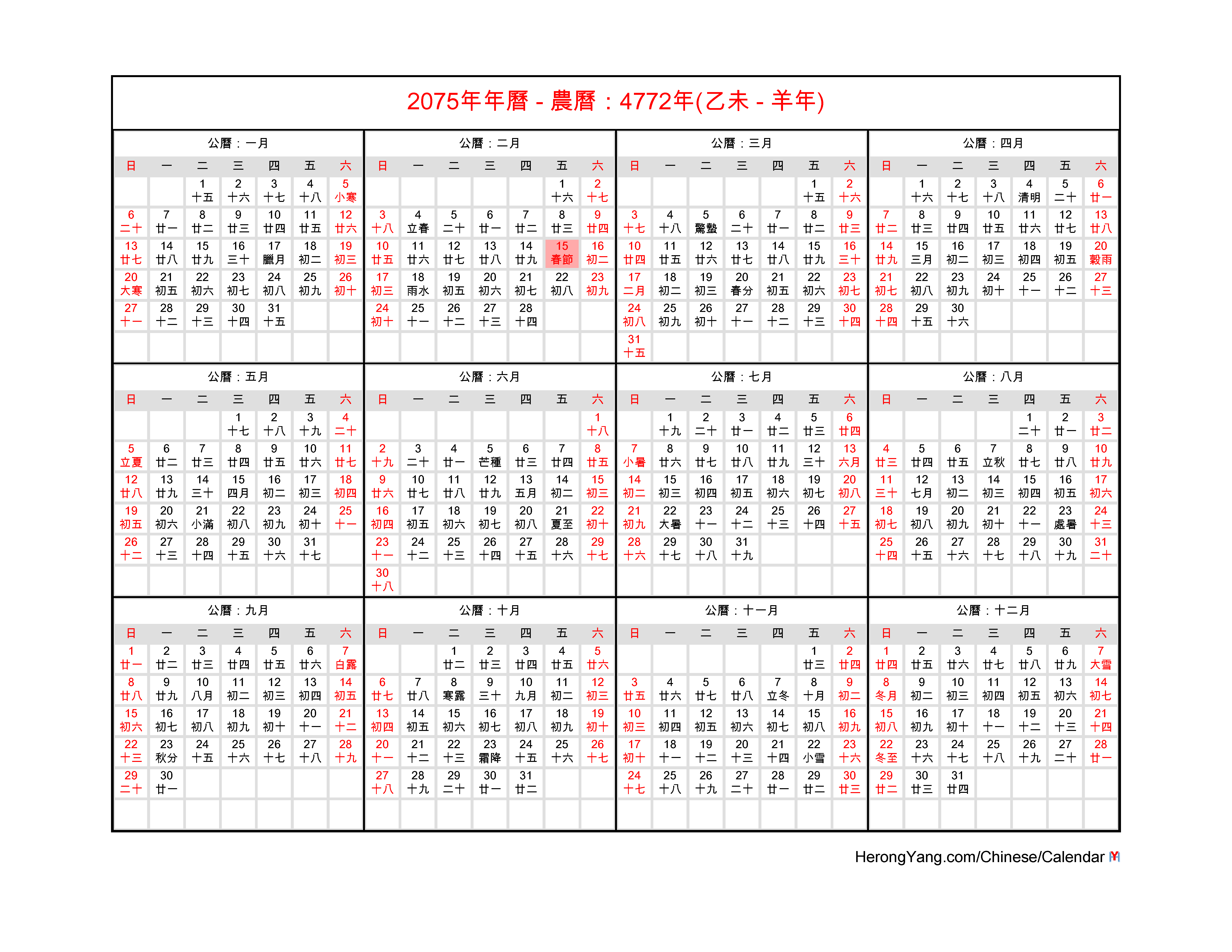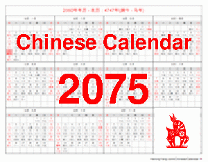 Want to know when is the 2075 Chinese New Year day? Look for free Chinese calendars for 2075?