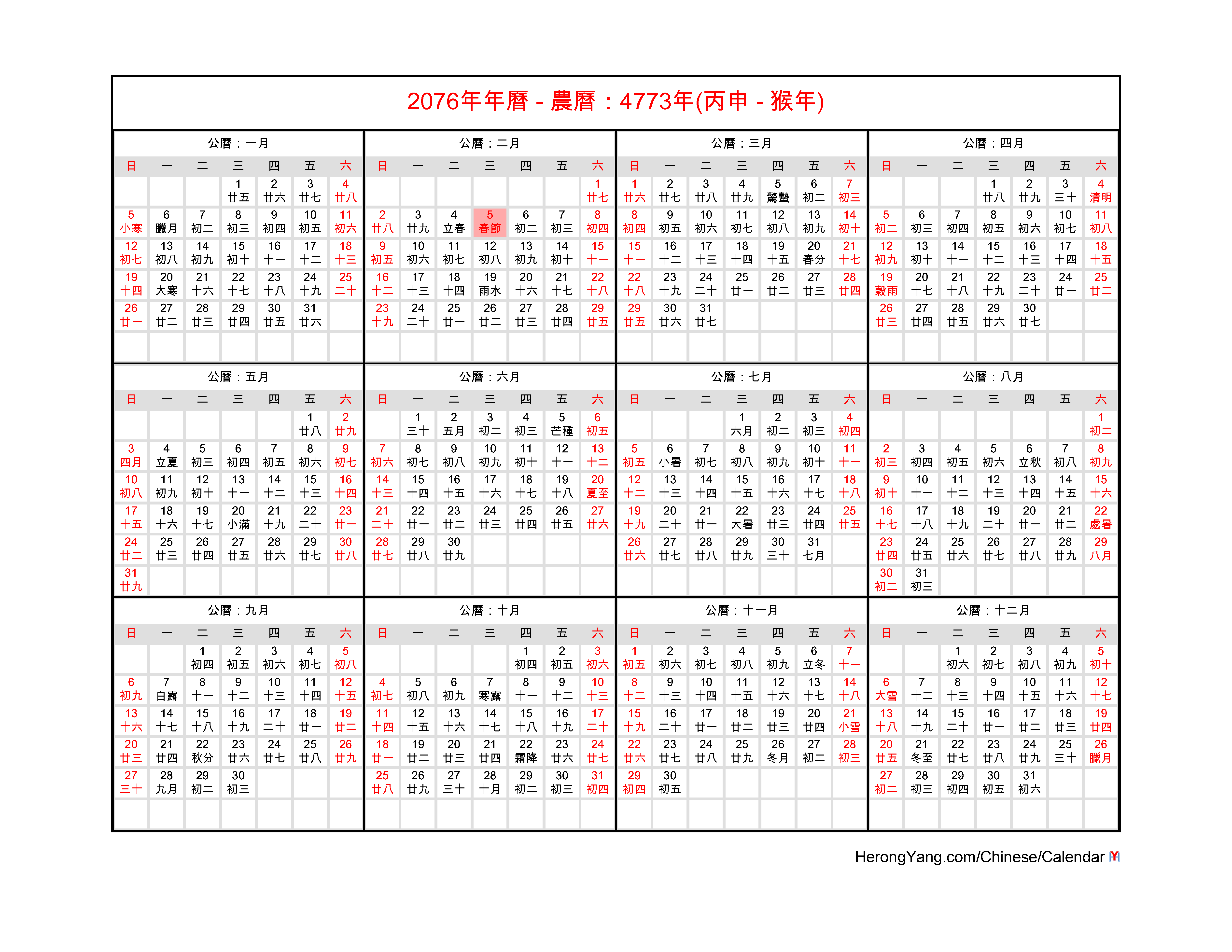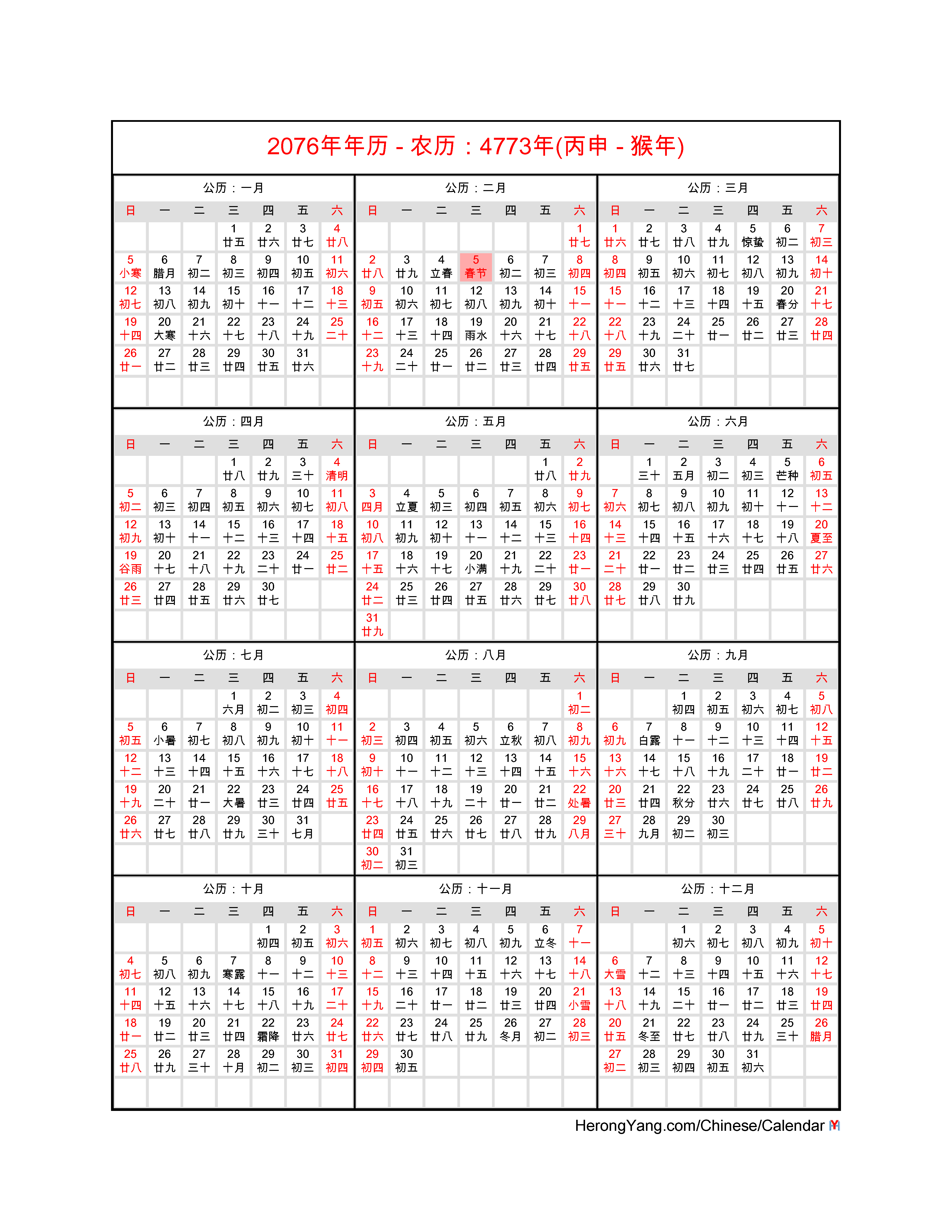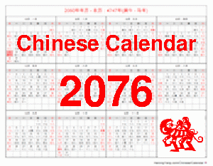 Want to know when is the 2076 Chinese New Year day? Look for free Chinese calendars for 2076?