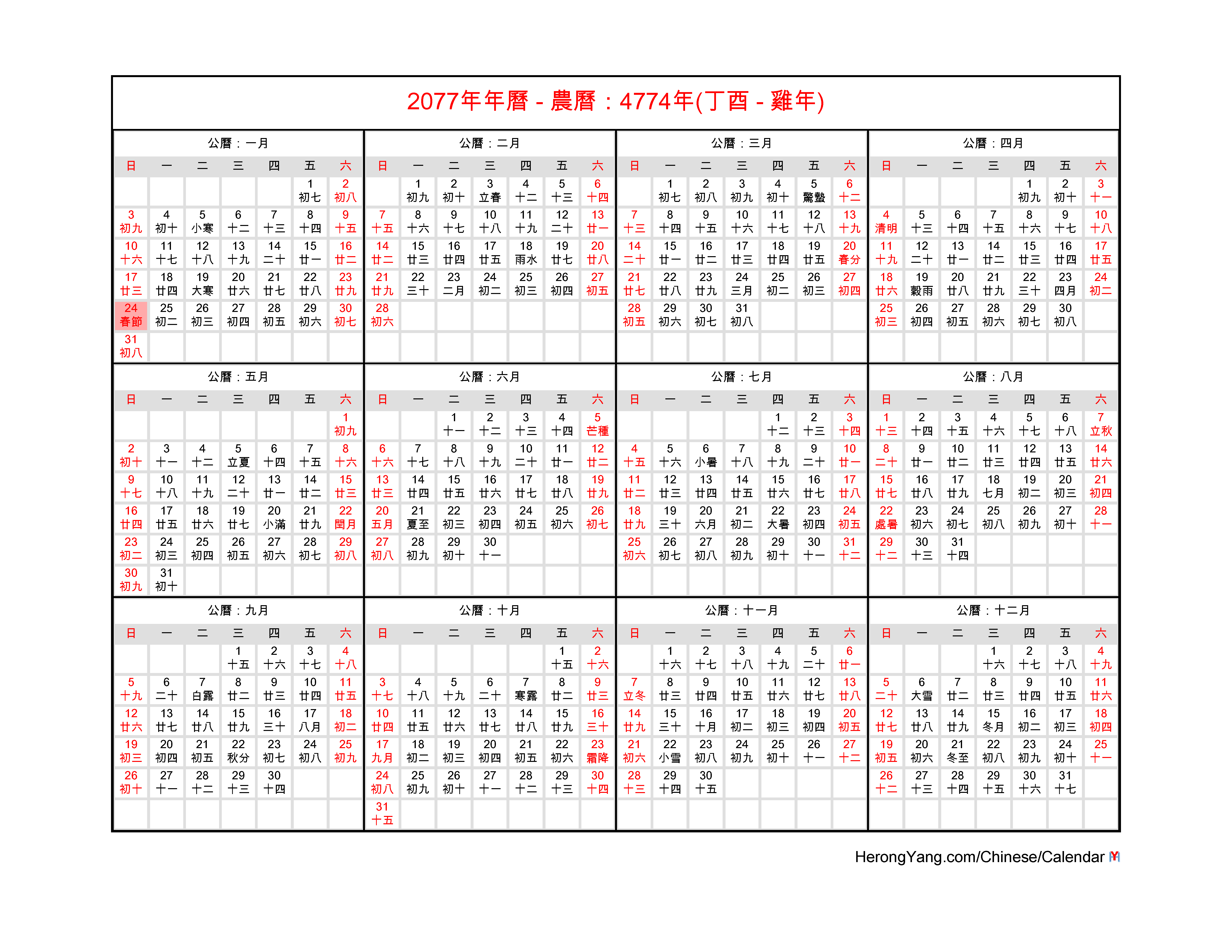 Want to know when is the 2077 Chinese New Year day? Look for free Chinese calendars for 2077?