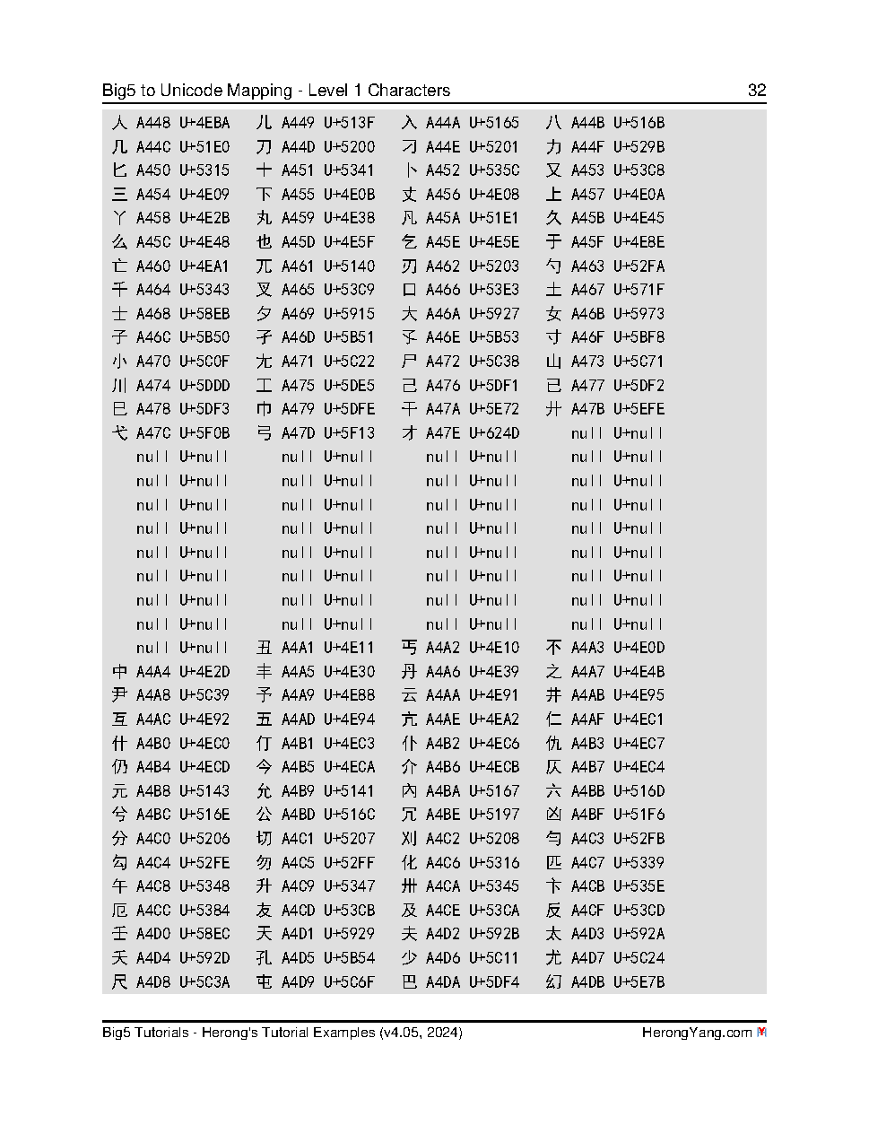 Big5 Tutorials - Herong's Tutorial Examples - v4.05, by Herong Yang