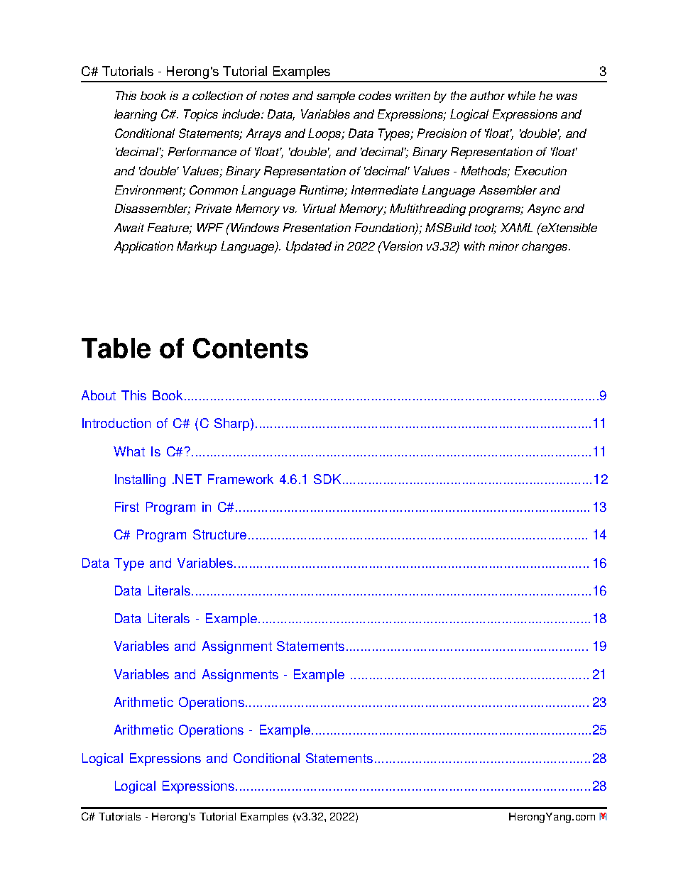 C# Tutorials - Herong's Tutorial Examples - v3.32, by Herong Yang