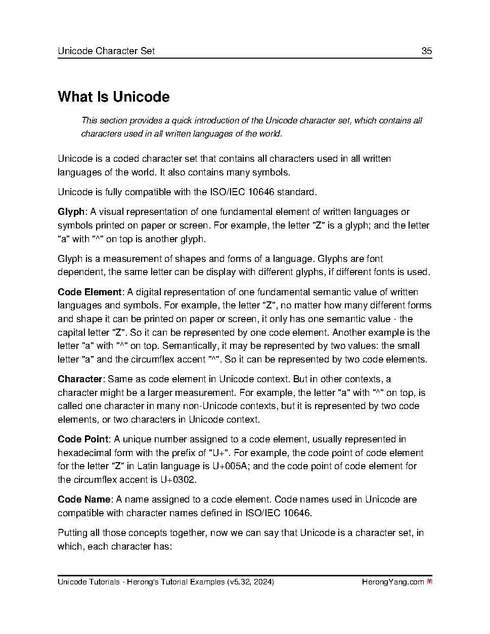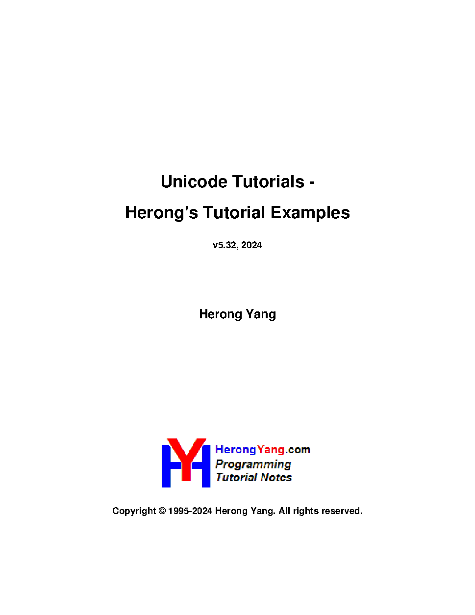 Unicode Tutorials - Herong's Tutorial Examples - v5.32, by Herong Yang