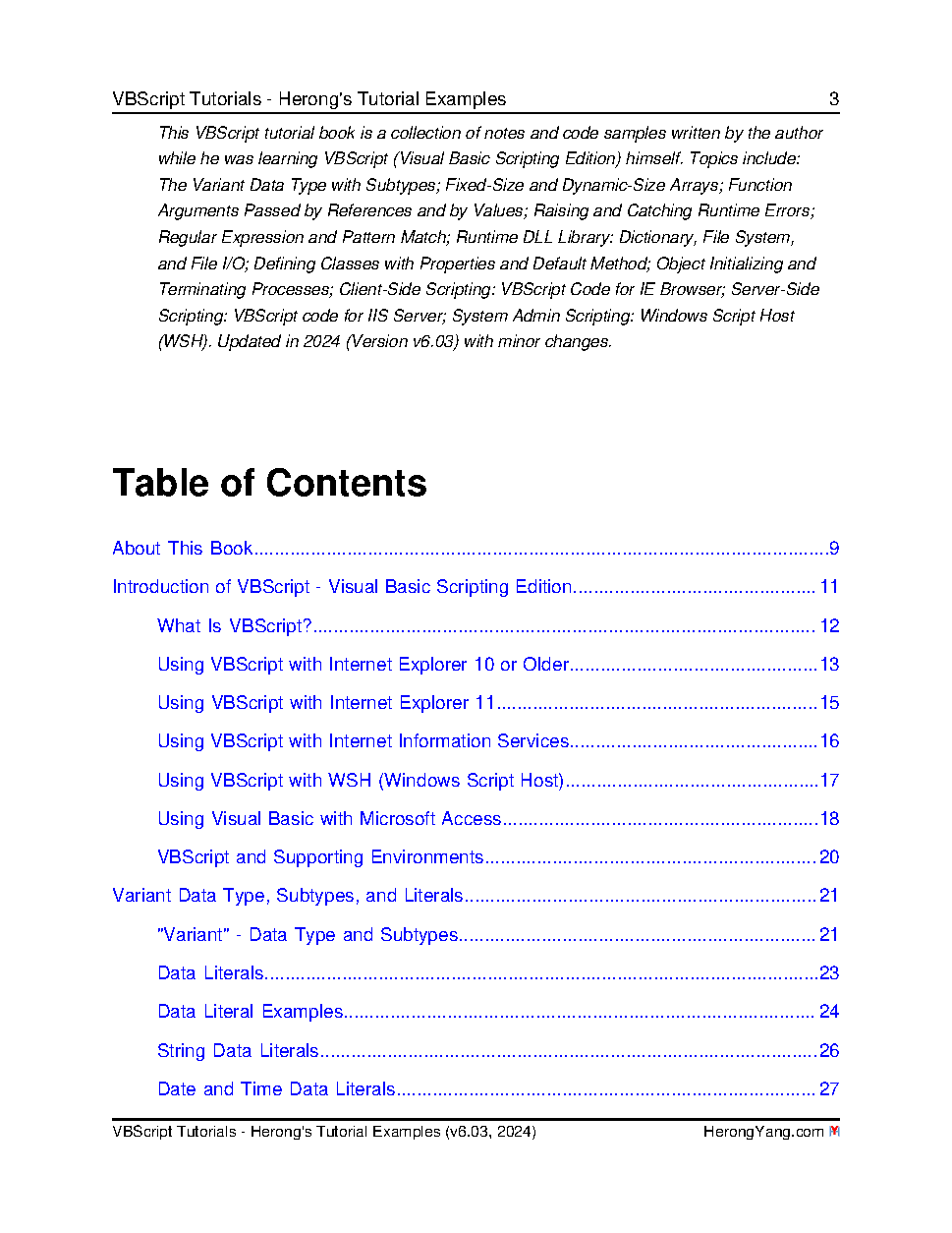 VBScript Tutorials - Herong's Tutorial Examples - v6.03, by Herong Yang